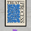 Un recordatorio poderoso enmarcado en un diseño floral vibrante. Este cuadro combina tipografía elegante con flores azules de estilo retro para motivar y decorar cualquier espacio. Ideal para oficinas, estudios o rincones creativos que necesitan un impulso de energía positiva.