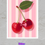 Un dúo de cerezas sobre fondo rosa a rayas que grita estilo 🍒